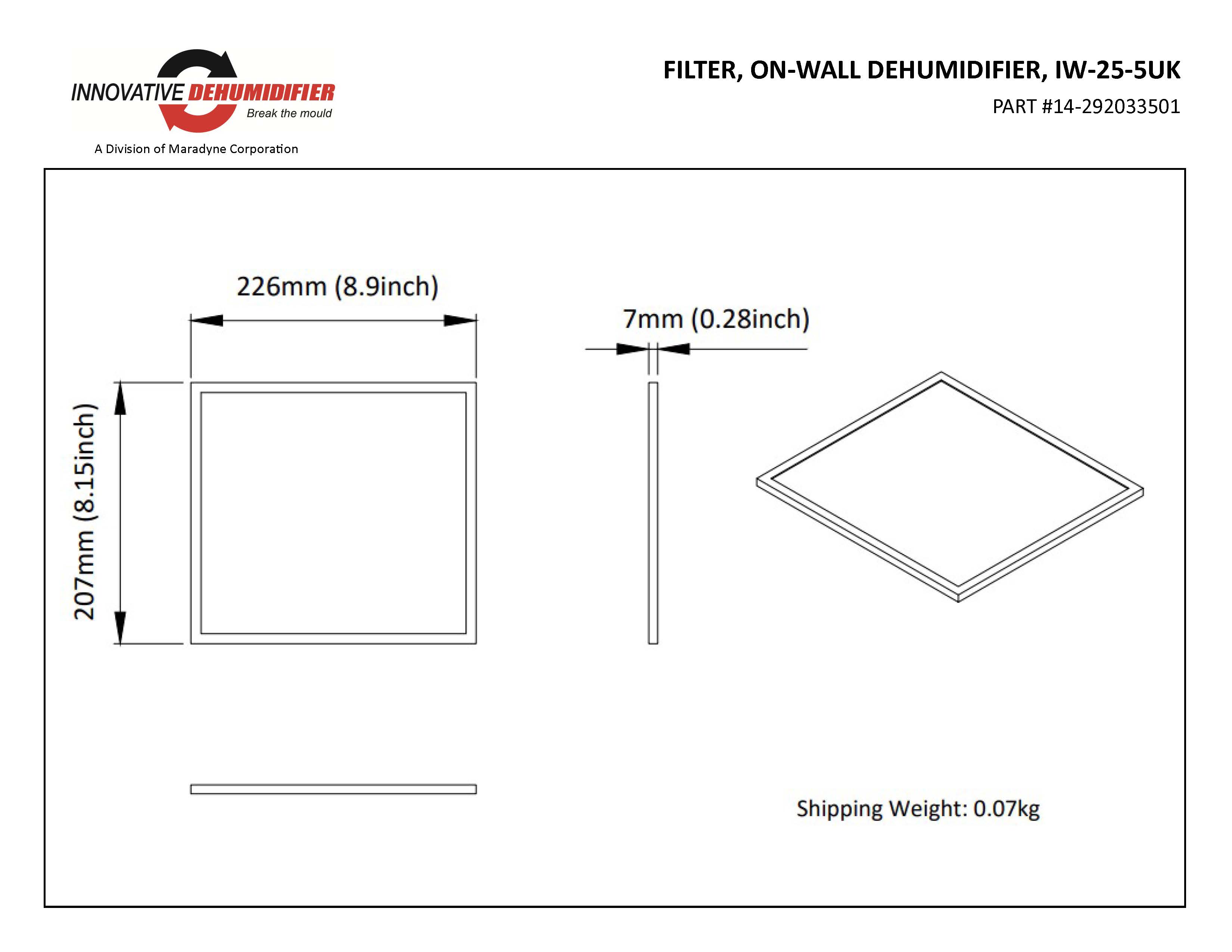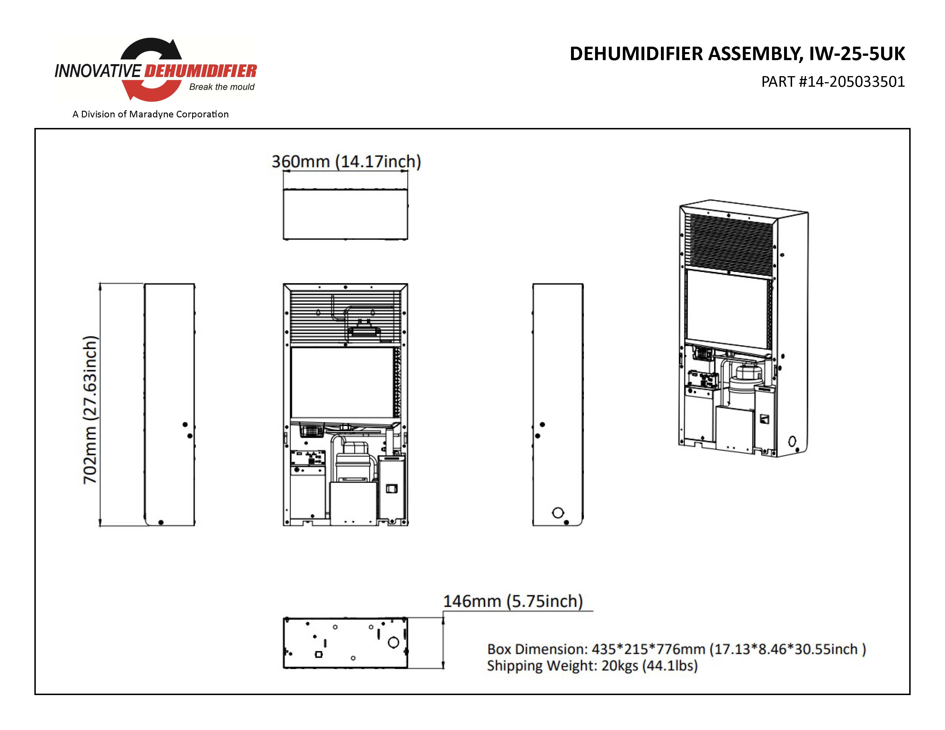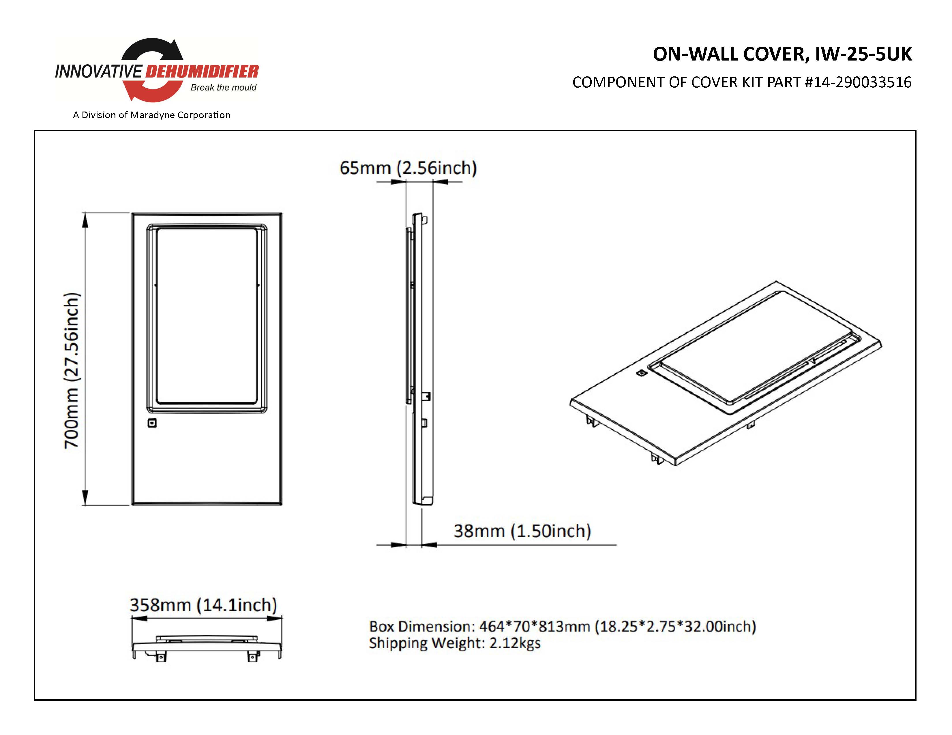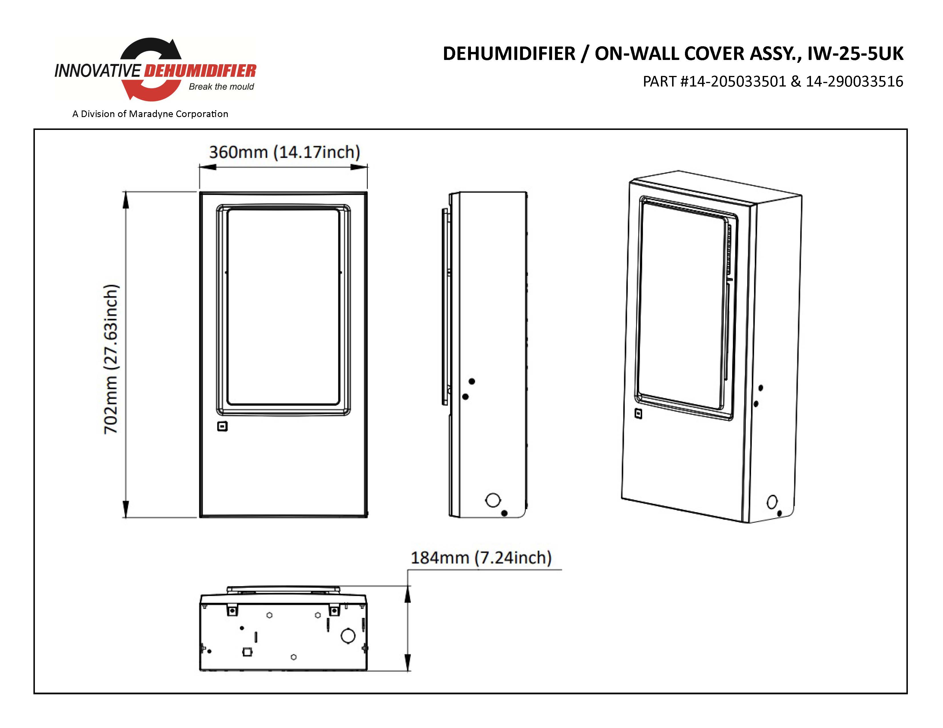 The built-in IW25-5 ON-Wall dehumidifier is designed for direct surface wall mounting on surfaces including CMU block, masonry, concrete, brick, etc.